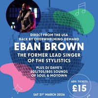 Eban Brown, the former lead singer of The Stylistics, returns to John Street Social as part of his 2026 UK spring tour. This is not to be missed....