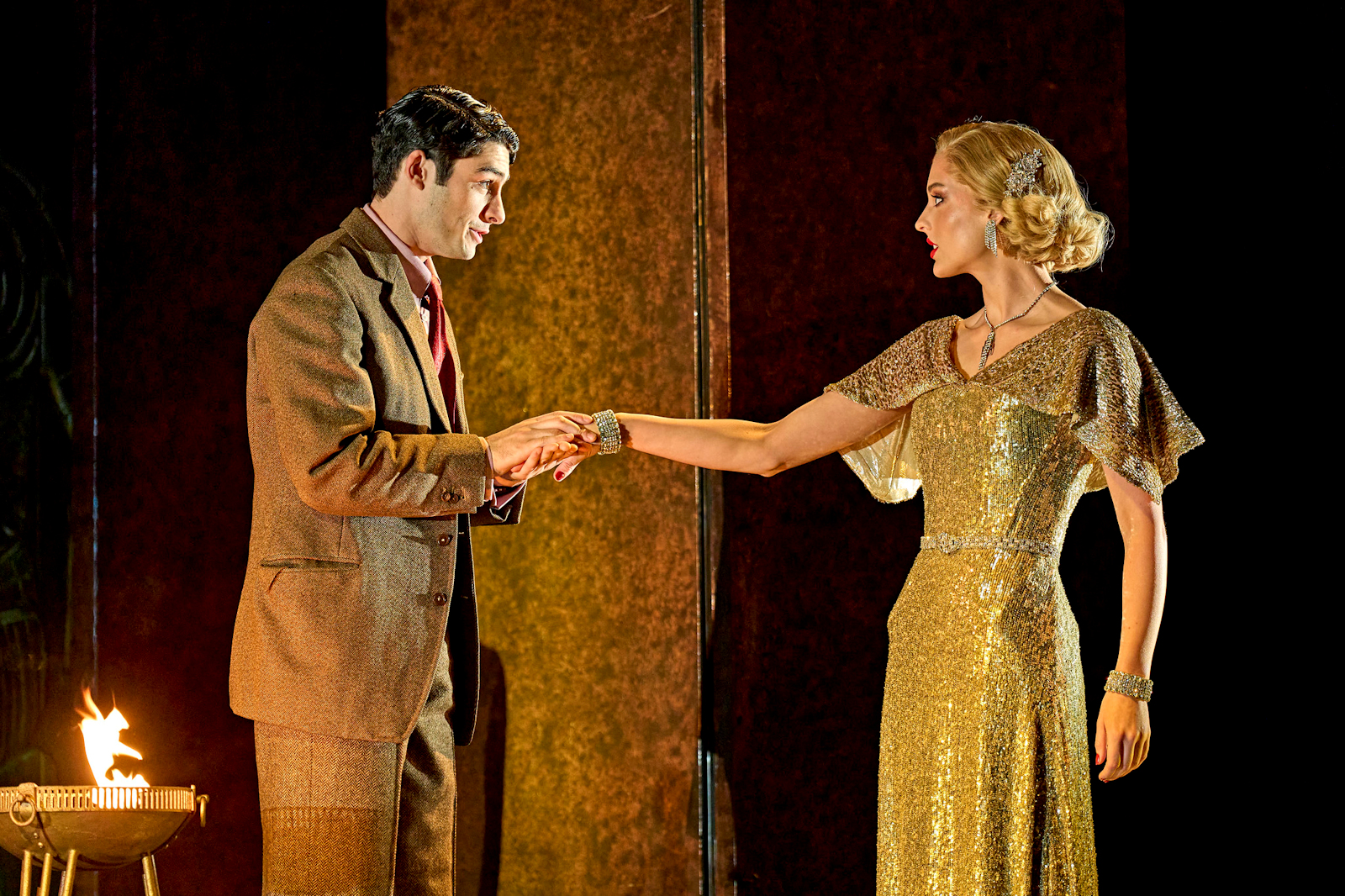 Glynis Barber (Beautiful – The Carole King Musical, The Graduate, Blake’s 7) is illuminous as Salome Otterbourne. Quirky, over the top, often inappropriate in the best possible ways, she has a flare for the artistic and dramatic and loves to toot her own horn and self-deprecate in equal measure. This is a fabulous performance that firmly places Salome in the hearts of the audience. In short, she is a scream! No filter and opinionated, Glynis Barber makes this handful of a character entirely loveable. Camilla Anvar (Bark Bark, Dead And Kicking) weaves magic as her daughter Rosalie Otterbourne, a lady who knows what she wants and gets it with a persuasive charm. She is fun to watch and offers strong relationships throughout the cast, as a daughter, a lover, and a support system to Jacqueline, played by the impressive Esme Hough (Grace, Professor T, A Midsummer Night’s Dream). Hough’s is such a powerfully strong emotive performance that not only do we see her love, loathe, manipulate, grieve, have fun, be lost, she also takes the audience on the journey with her so that we too feel a range of conflicting emotions towards Jacqueline ranging from pity to empathy. Completing the love triangle are Libby Alexandra-Cooper (professional debut) as the elite Linnet Ridgeway and Nye Occomore (Industry, Grantchester) as the lovestruck Simon Doyle. Libby Alexandra-Cooper devours this role with ease, allowing Linnet to be fun and flirtatious one minute, then spoiled and aloof the next. The performance is layered with intricately woven conflicting traits to keep both the other characters and indeed the audience on their toes, always second guessing how Linnet may respond next.