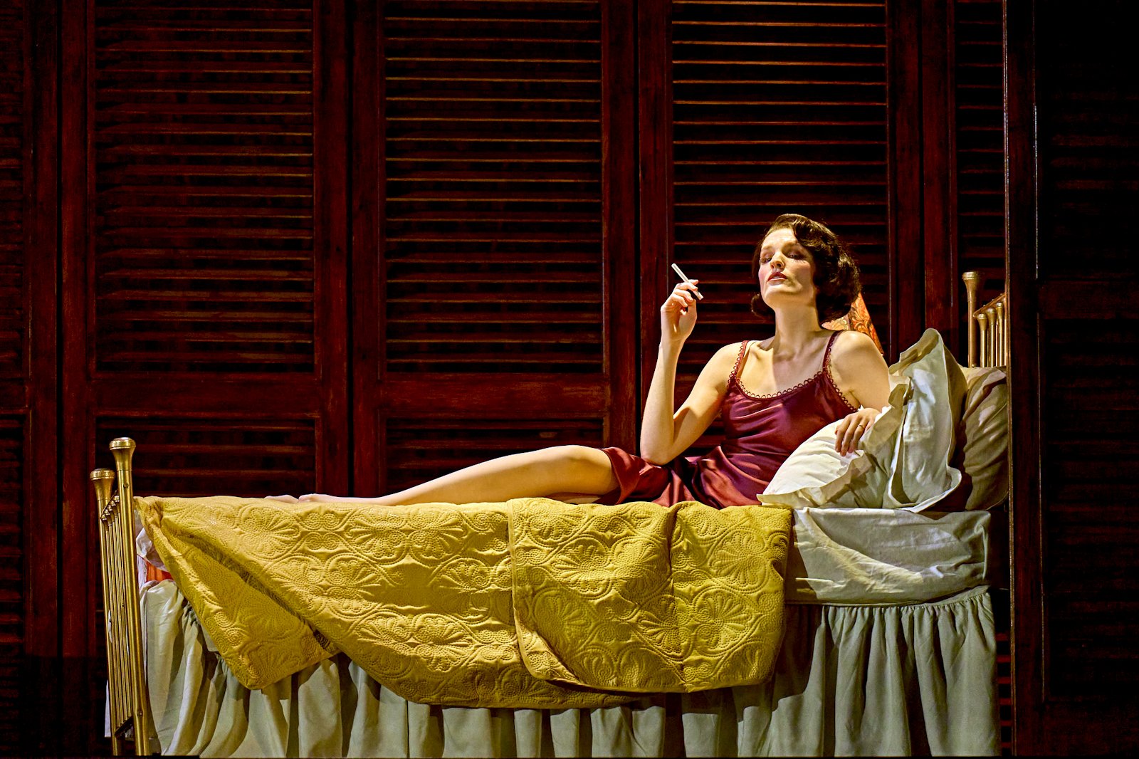 This production, directed by Lucy Bailey, is slick, seductive, and sinuous, carving out endless interactions between the characters to continually keep us guessing. The humour is expertly executed, giving these characters a freedom to be callous and self-serving, but with an honesty that is refreshingly freeing. Every detail is considered, nothing is by chance, even the moving of set is choreographed to flow with the music, and timed to perfection, whilst simultaneously being an extension of the character who transports it. It is cool, clever, and captivating. With a fabulous set designed over two levels by Mike Britton, it not only allows interplay between the characters for heightened tension and drama but involves the audience in an intuitively intelligent way for we are privy to conversations that characters are not. This direction equally encourages eavesdropping, dangerous whispers, and instinctive changes of pace. The two levels are constructed of sliding, slatted wooden doors that create shadows, glimpses of who may be hiding behind them without ever being entirely sure, and allows for the stage to be continually reinvented as new rooms and spaces. In certain lighting, due to the slats, they also felt imposing, giving a chilling echo of prison corridors, perhaps a glimpse of what lies ahead for some of the passengers. A breath-taking moment plays out just before the murder happens, when the entire cast slowly and individually tease us with their presence behind the wall of slats. We know someone is there, but we can’t make out who. Mystery and intrigue escalate as somehow the cast have danced through the shadows to form a formidable line up of suspects hiding in plain sight, then a gun shot, then blackout! Oooh I’m getting goosebumps just remembering!