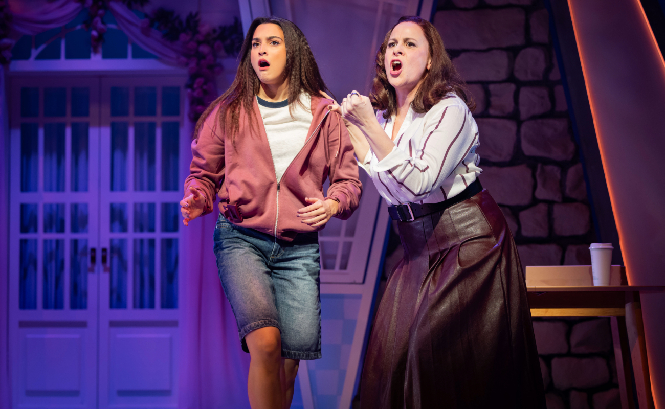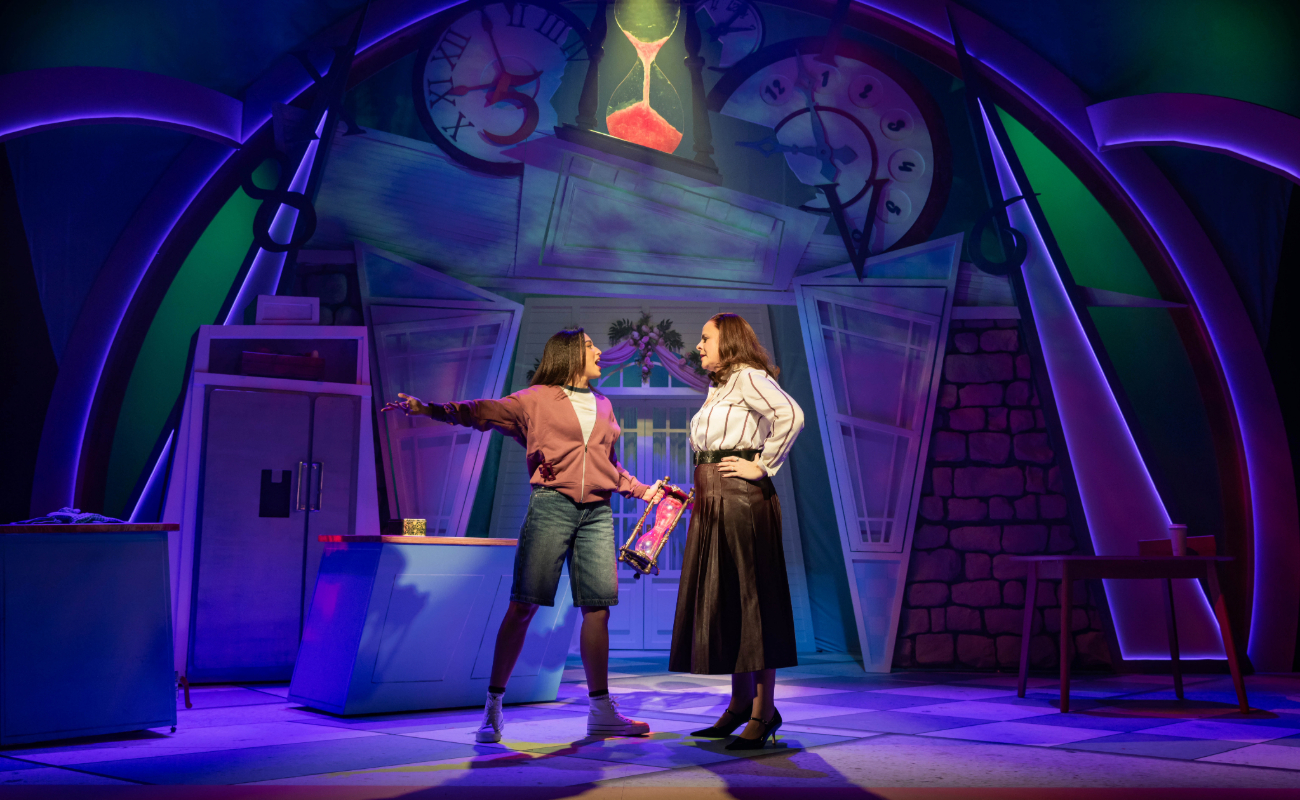 From the moment I walked into the theatre, I knew I was in for a good time. The set was bright and fresh, and paid homage to the original movie. My eyes were immediately drawn upwards towards the proscenium arch, to the broken clocks and hourglass looming over the rest of the seemingly normal stage. We later learn that a magic hourglass is the reason for the whole show, because it causes the mum and daughter to swap bodies. I personally thought this was a good change from the fortune cookies in the movie, because it just felt more musical. It provided more opportunities to have fun with the storyline and made for some memorable moments.
