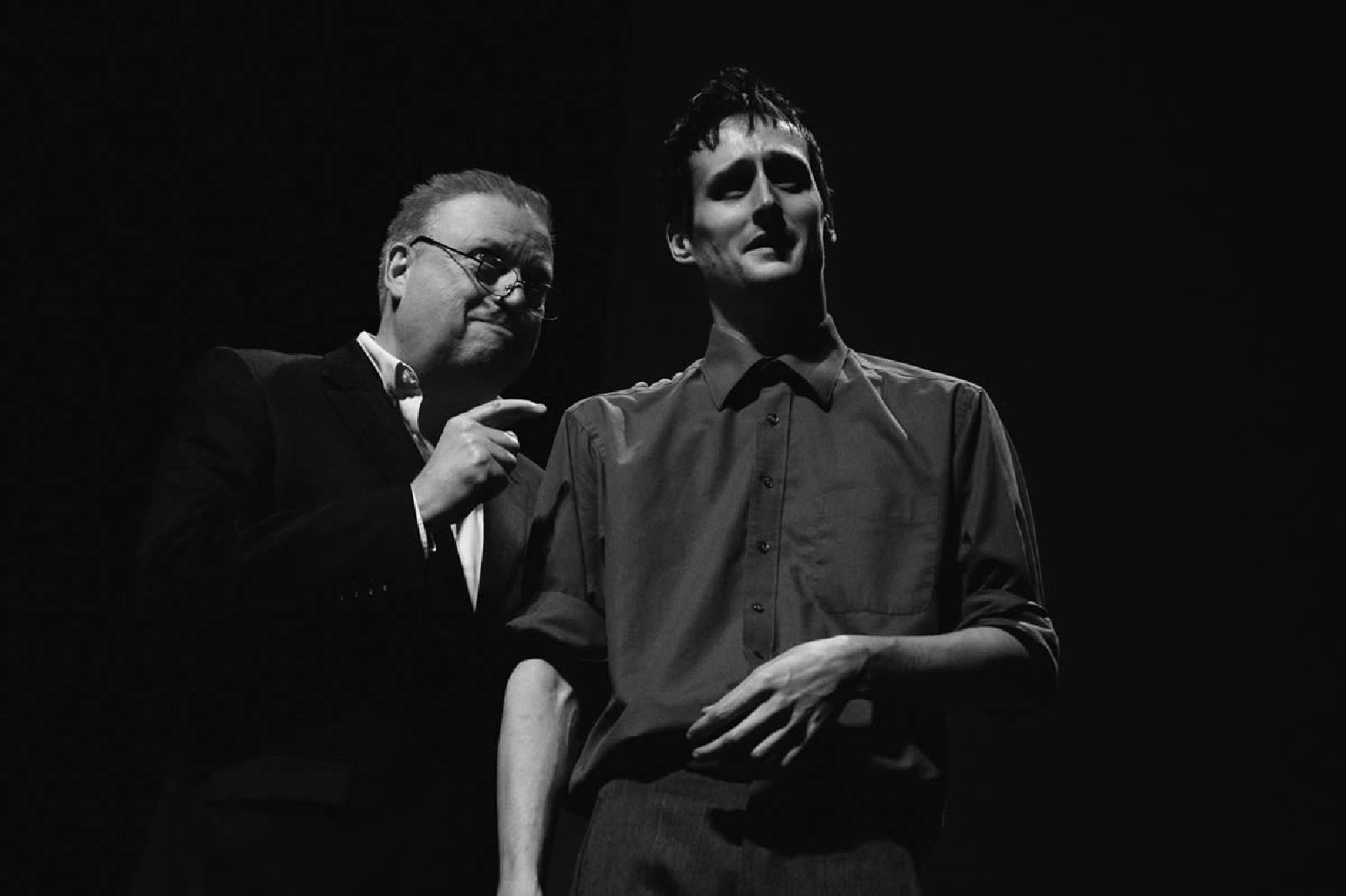 While Anthony H. Wilson’s own story is a major part of New Dawn Fades, the central character is of course Ian Curtis, whose tragic life story is told, along with Joy Division’s musical history by eight actors, who between them perform twenty one different characters - ranging from Tony and Ian, with bandmates Bernard Sumner (played by Garient Lyons), Peter Hook (Gaz Hayden), and Stephen Morris (Jack McGarry). Ian’s wife Debbie is brilliantly played by co-director Lauren Greenwood, while Kivan Dene and Nicholas Eccles hilariously split the roles of, among others, manager Rob Gretton, producer Martin Hannett, photographer Kevin Cummins, journalists Paul Morley and Mick Middles, and some of Tony Wilson’s more unlikely interviewees on Granada Reports: Roman General Agricola, 16th century occultist John Dee, Friedrich Engels, and Shelley (both Percy and Pete).