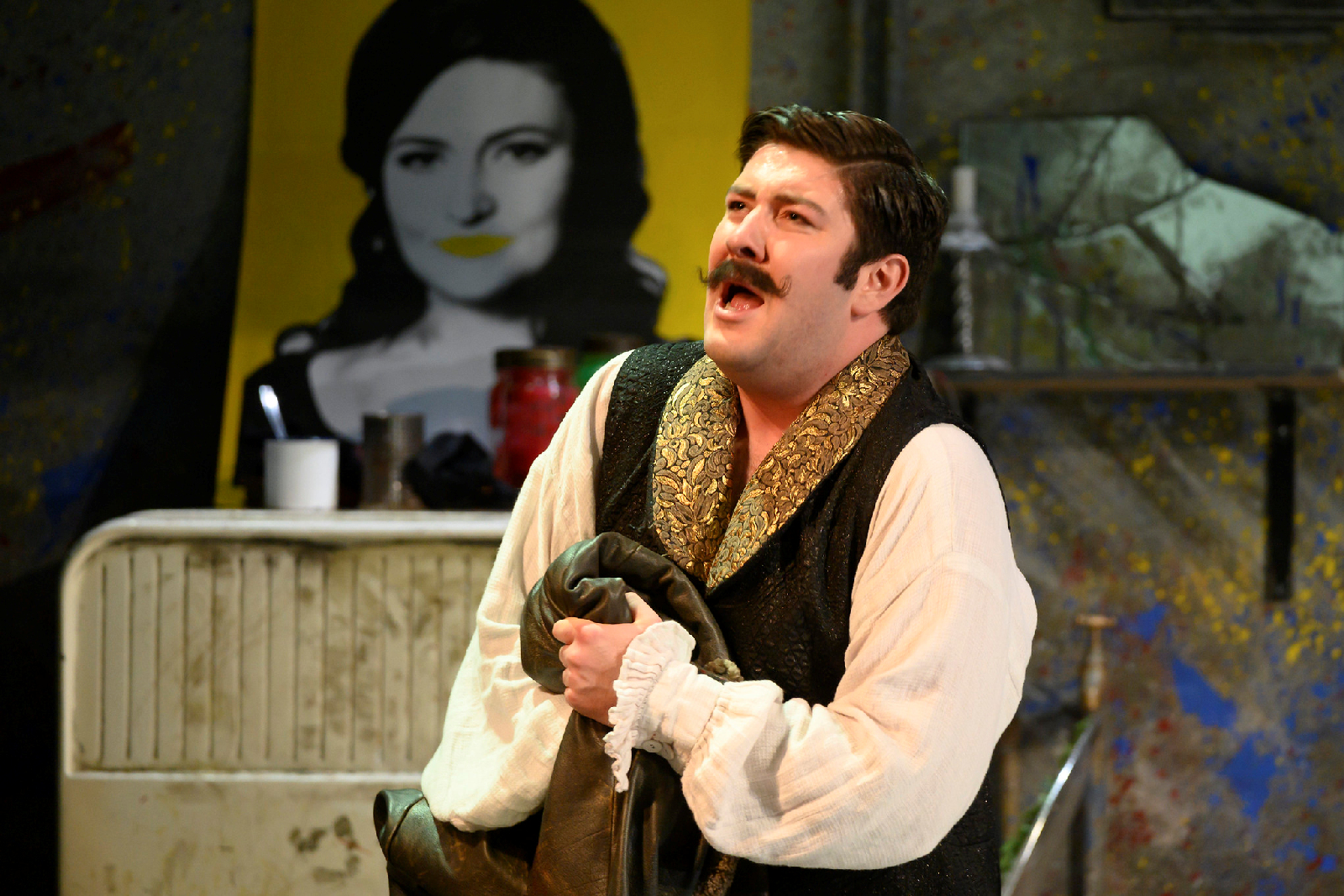 Under the bohemian baton of Garry Walker, the Opera North Orchestra were as glorious as ever, teasing every breath out of Puccini’s emotive score, entwining the melodies, arias, duets and chorus with our own beating hearts. Their rich sound echoed around the theatre, providing inspirational music for this phenomenal cast. Anthony Ciaramitaro simply soared as Rodolfo, melting any tension you may have been carrying from the day, and pulling you into the moment with an aching beauty. Together with Olivia Boen as Mimi, they formed a striking, believable, and hypnotic pairing, with Boen’s voice ringing out clear as crystal and with just as much beauty. Yuriy Yurchuk as Marcello gave us a touch of earthiness, grit, and power as Marcello’s emotions often overpowered sense, making this a grounded, hunkered down performance that was sprinkled with a flavourful unpredictability. This was also true for Elin Pritchard as Musetta, unafraid to fire back and be his equal. Oozing with passion, seduction, and a fiery spirit, yet completely stripped back and vulnerable with an overwhelming kindness and tenderness at the end, this was a stunning watch. Completing the bohemian friendship group were Han Kim as Colline and Seán Boylan as Schaunard who were both outstanding, with an additional magic being gifted to us when all four friends performed together. The sound they created was so moving and their camaraderie, playful banter, and humour shone through, really solidifying this production as one that applauds the things in life we all have access to, yet often take for granted in the pursue of the grander things we desire. The whole chorus and ensemble were captivating too, really breathing life, energy and frenzy into every moment.