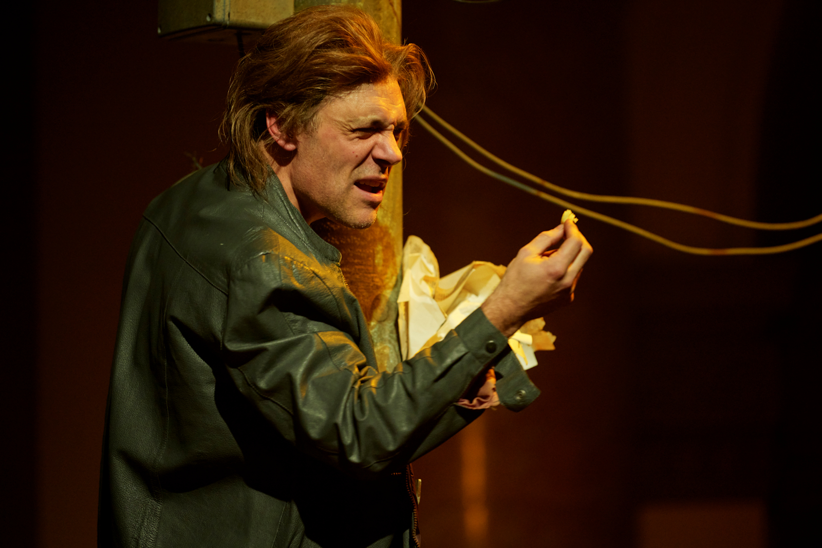 Johnny Vegas (Ideal, Benidorm, Bleak House) is magnetic as Scullery, our guide through the night. He balances bravado with vulnerability beautifully, delivering Cartwright’s language with rhythm and authenticity. There’s humour, but there’s also a quiet sadness bubbling underneath, which Vegas captures effortlessly.