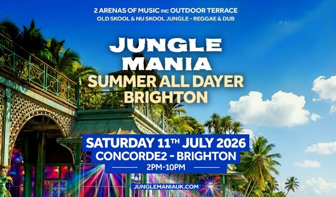 We take over the main arena + outdoor terrace, with the very best in Jungle + Reggae & Dub! Jungle Mania Brighton | Summer All Dayer Saturday 11th July 2026 Concorde2 2pm - 10pm Main Arena: Jungle Outdoor Terrace: Reggae & Dub - Line up to ...
