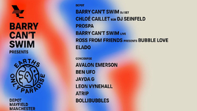Multi-faceted Scottish artist Barry Can't Swim moves from deep house to jazz, from ambience to the percussive charge of afrobeat, all held together by his singular sense of purpose and trademark vivacity. DEPOTBARRY CAN'T SWIM (DJ SET)CHLOE...